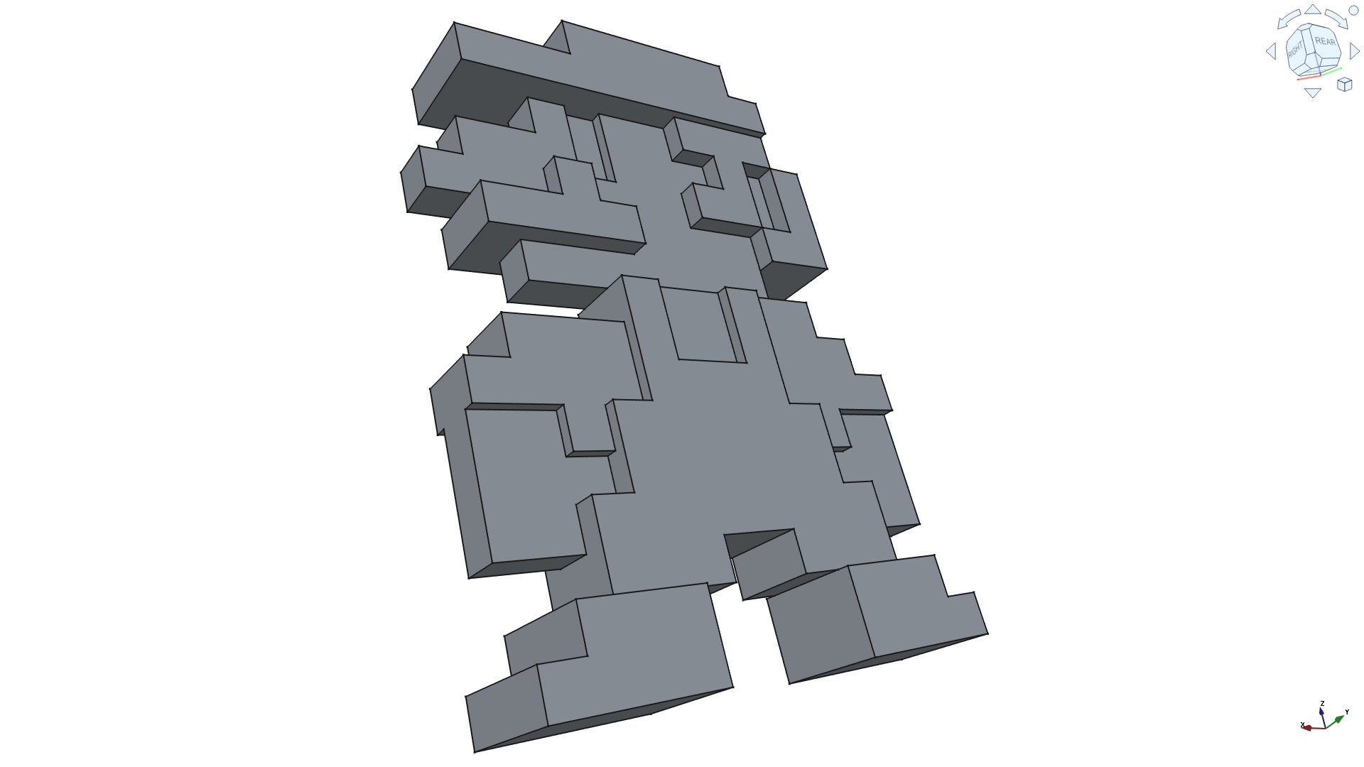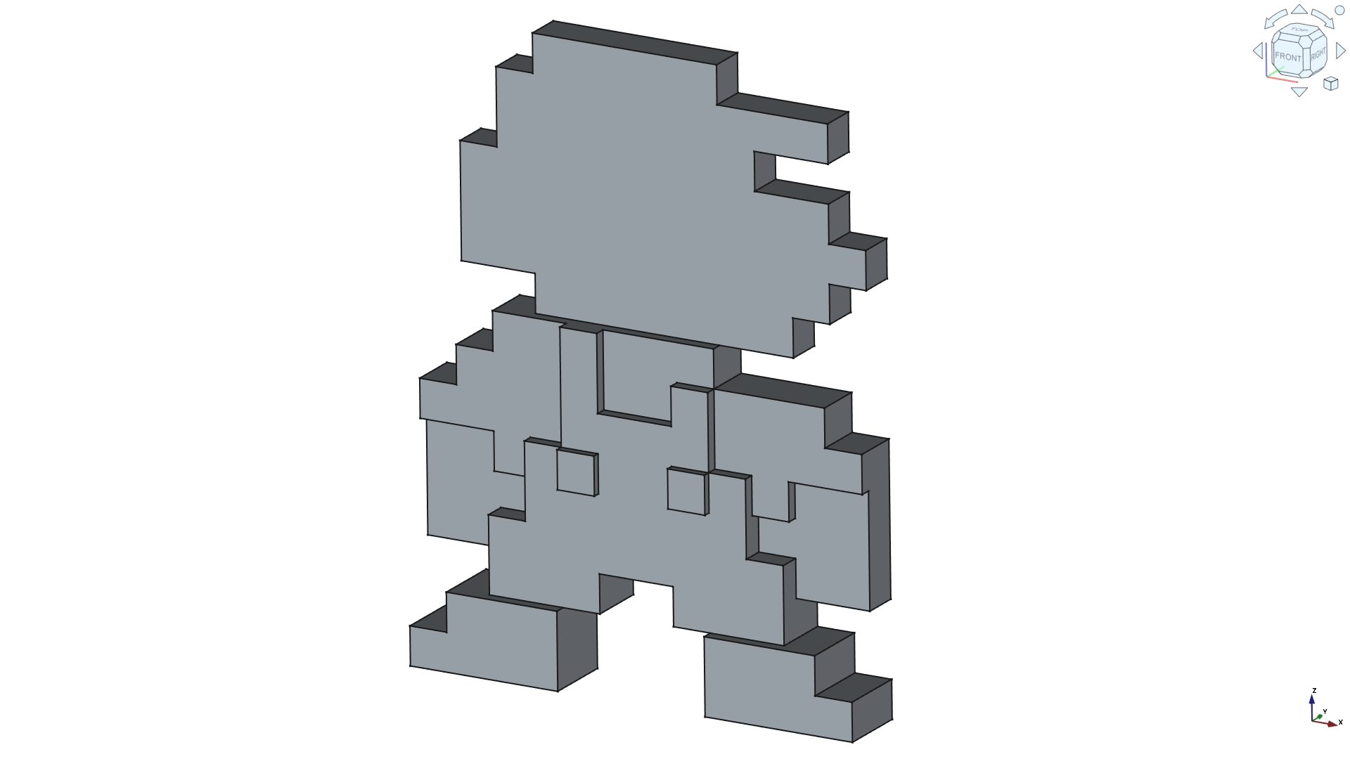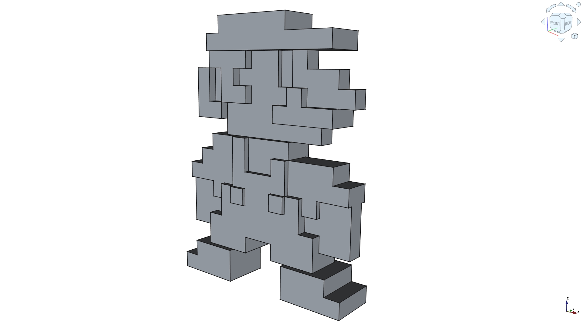 A first try with FreeCAD (after SolidWork’s license expired). Maybe the most known video game character. This was modelled previously with SolidWorks but then an other side was flat. The sides are pretty much the same except that the overalls has buttons on the front side only.