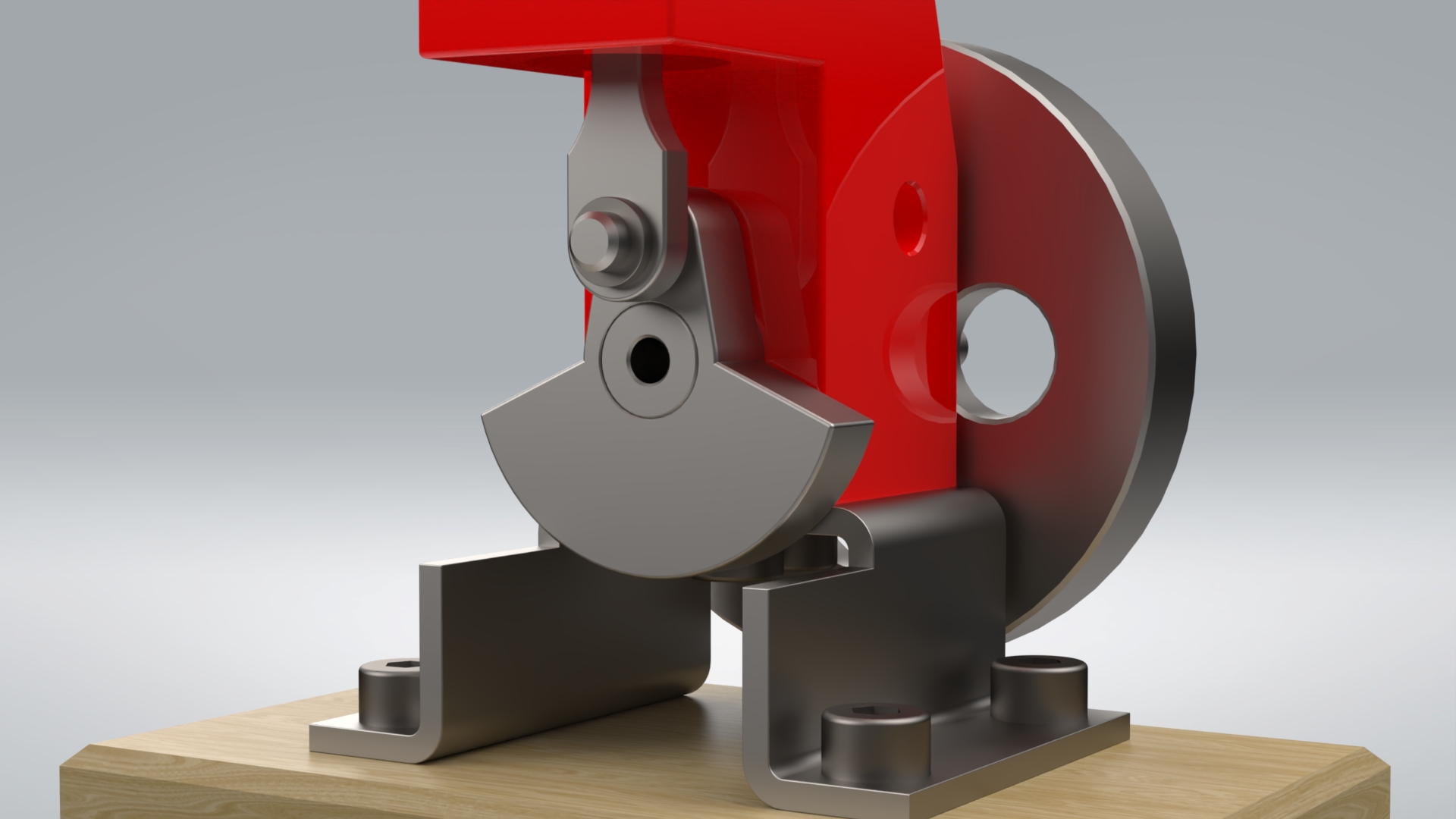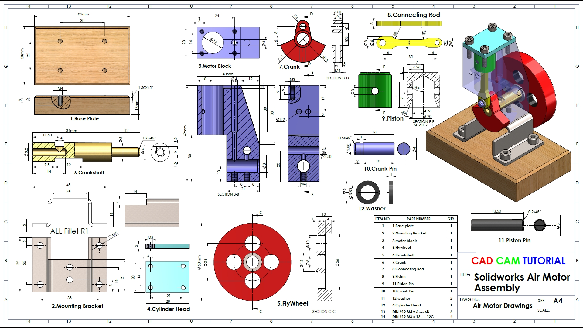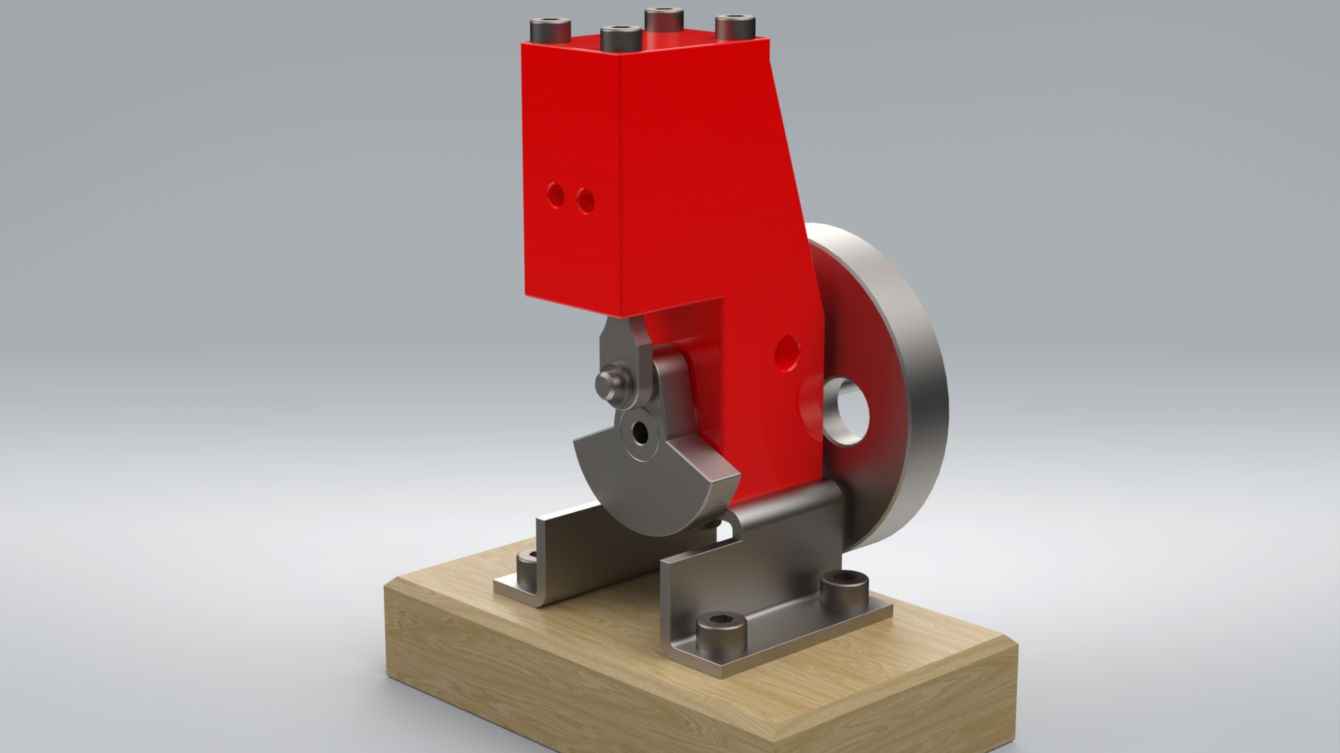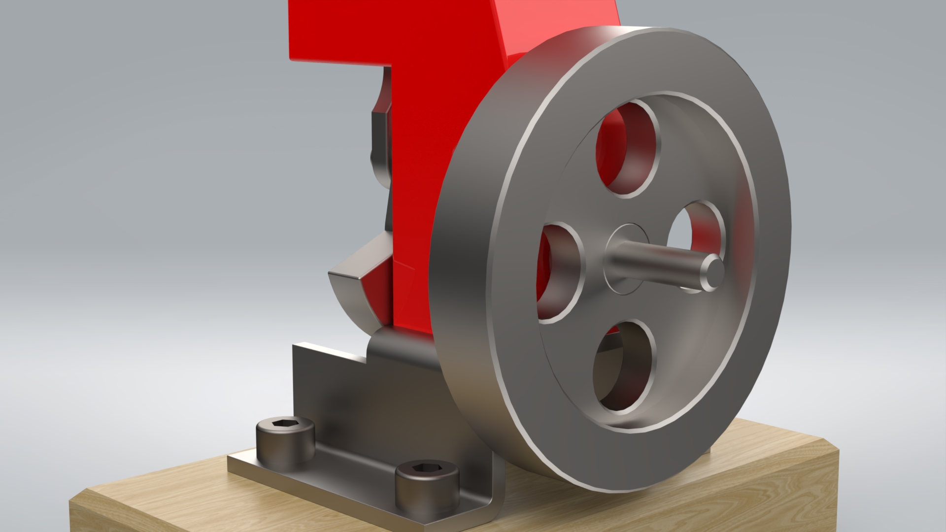 This assembly was found via Google image search. This was somewhat challenging modelling exercise. First of all, some dimensions were missing. Hexagon socket head cap screws weren’t modelled in the technical drawing. One screw that was supposed to be located in a crank, had to be done without the cap. Other thing was to assemble parts in a correct order. Nevertheless, when a flywheel is rotated, the air motor works like it should.